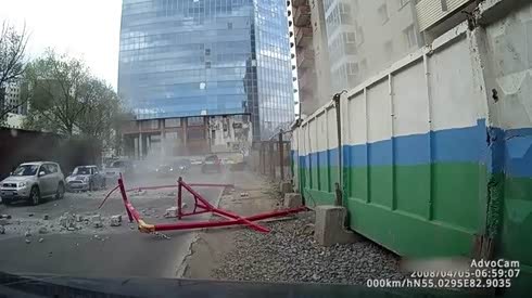 猝不及防 升降架高空坠落砸中丰田SUV