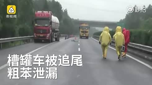 铺沙救援 槽罐车被追尾29吨粗苯泄漏