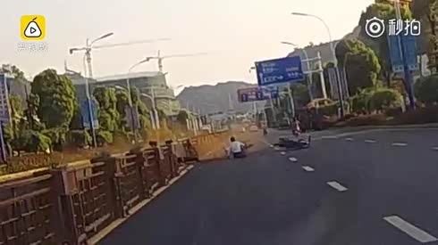 摄像车一脸懵逼 摩托竟直接撞上防护栏