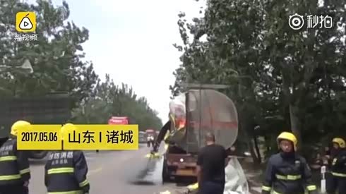 油罐车PK半挂车 前者漏油后者"断头"