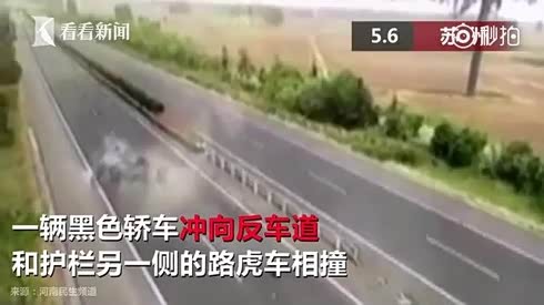 瞬间四分五裂 轿车冲向反车道撞上路虎