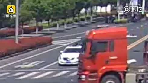 强大冲击力 大货车任性变道摄像车遭殃