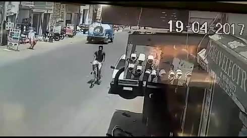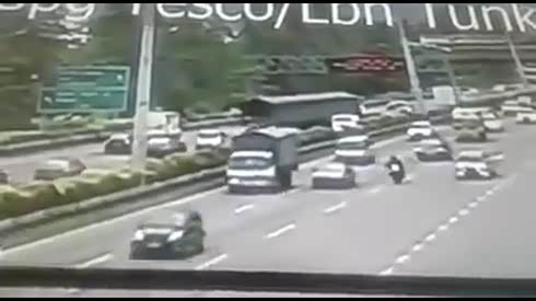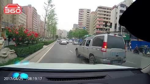 万幸逃过一劫 摩托司机被卷大货车底