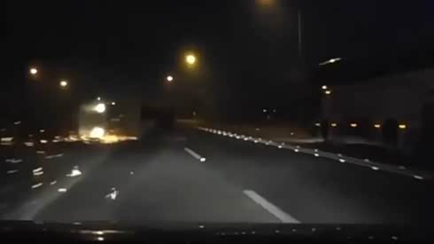 一路火花四溅 小货车高速突然失控翻车