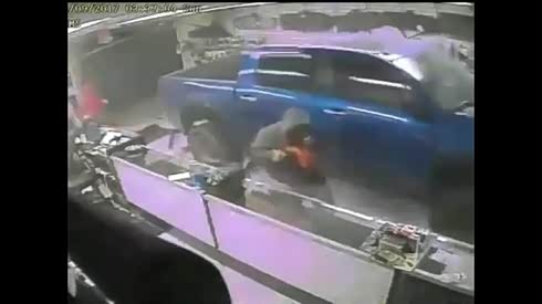监拍令人咋舌一幕 皮卡撞墙店铺遭洗劫