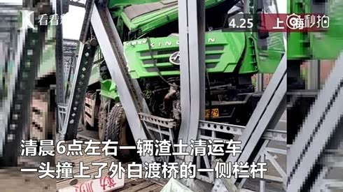 桥梁栏杆受损变形 失控大货车撞击栏杆