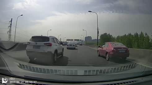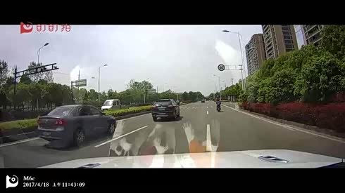 差点追尾 轿车刚提速就遇上前车变道