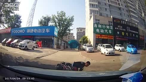 差点撞上了 骑车男从汽车前面飞快驶过