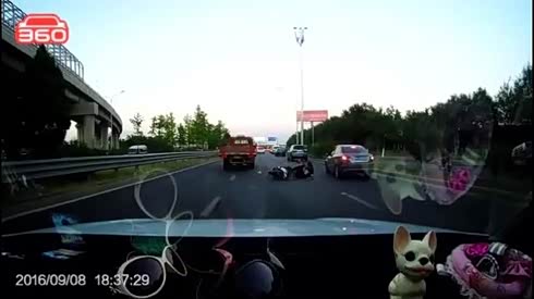 胆小者慎点 突开车门摩托被撞到遭碾压