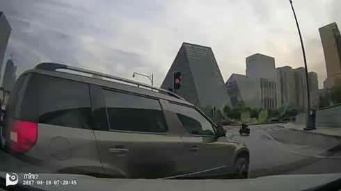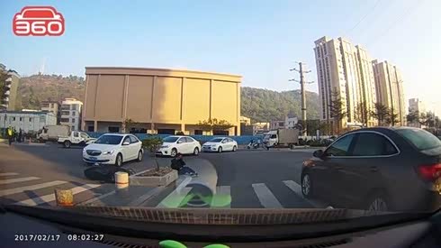 这祸惹大了 转弯车辆顶撞直行摩托车