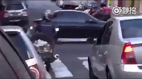 差点丢了性命 实拍摩托车撞车不慎摔车