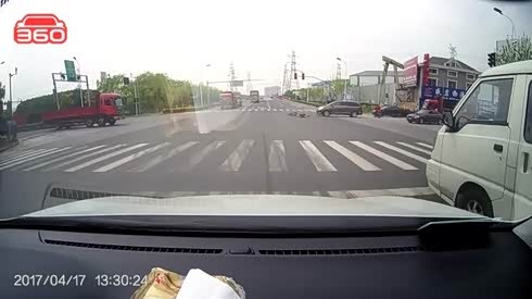 对自己不负责 电动车逆行闯红灯被撞飞