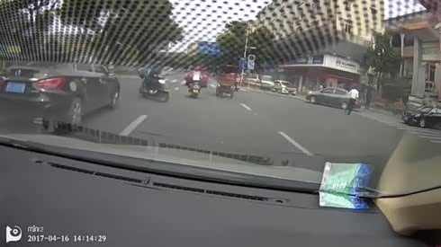 实在不小心 实拍小轿车变道导致剐蹭