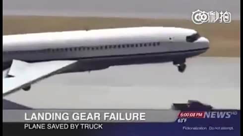飞机起落架失灵 皮卡抗住机头保降落