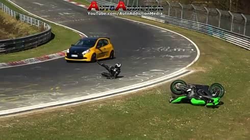 惊险一幕 摩托车手纽北赛道摔车险被撞