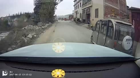躲都躲不及 三轮车乡间小路被两车夹杀