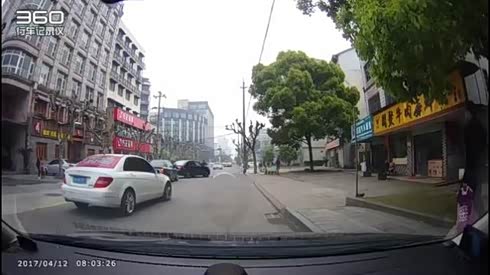 太无奈 女子骑电动车犹豫后闯红灯被撞