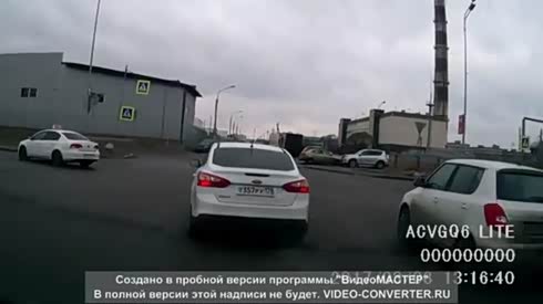 太不小心 SUV路口撞车后冲上雪堆翻了