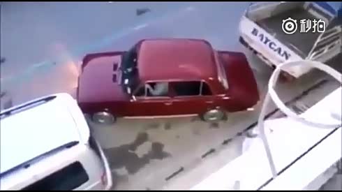 司机一路狂追 卡车没拉手刹溜车撞护栏