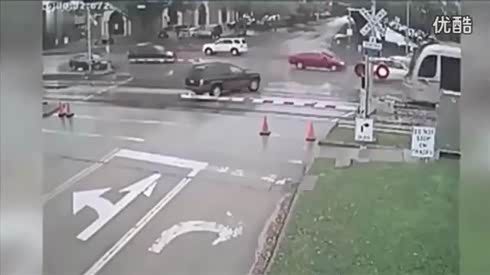 惨被火车撞飞 司机驾车闯护栏悲剧了