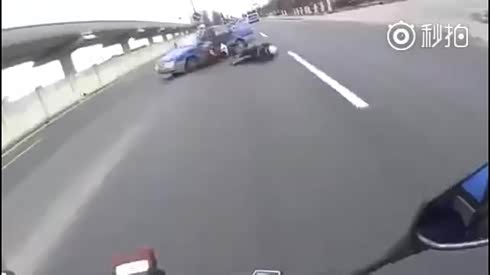 惊险一幕 车友惊险躲开旁边摩托车摔车
