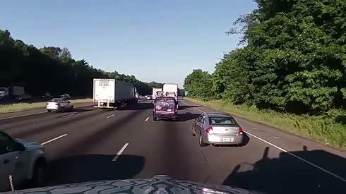 床垫高速掉落 摩托车悲催遭殃幸好没摔