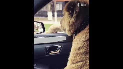 霸气十足 实拍老外开着大奔拉着狮子