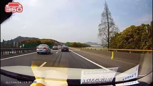 悲催透顶 轿车高速急刹引发4车连撞