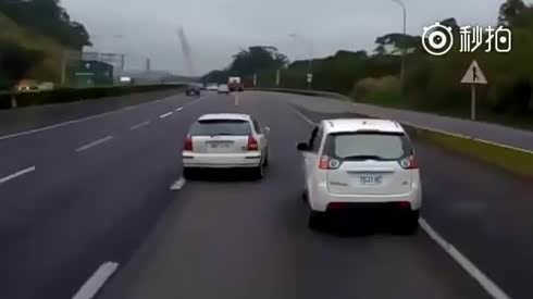 火气太大!实拍两辆小车公路互相别车