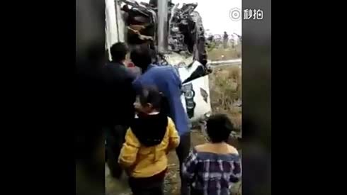 惨剧!大巴与货车相撞两司机当场死亡