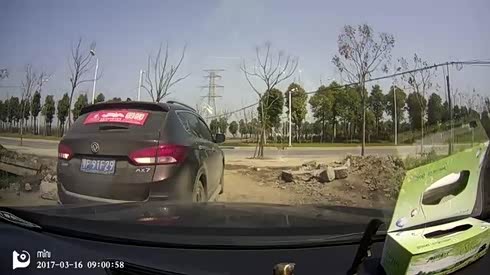 完全不看路 抢灯小车撞翻抢灯摩托车