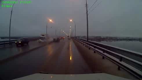 招谁惹谁了 高速两货车相撞畸变小轿车