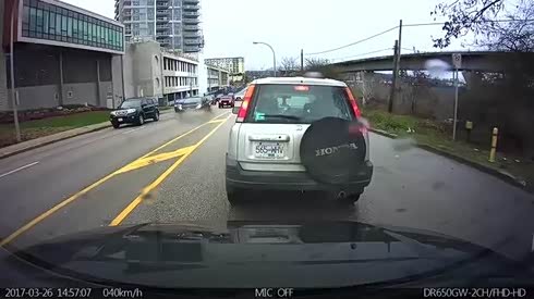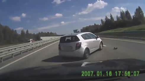 前车很悲催 摄像车遇急刹不幸追尾前车