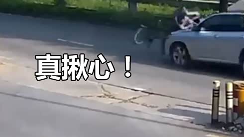 看着都揪心 女子带小孩骑车过马路被撞