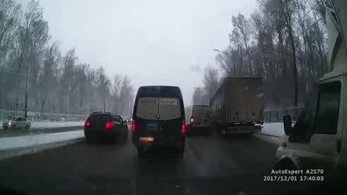 厢货直接冲入对向车道 “甩尾”撞大货