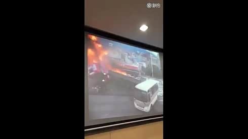 刹不住的悲剧 货车怼油罐车瞬间起火
