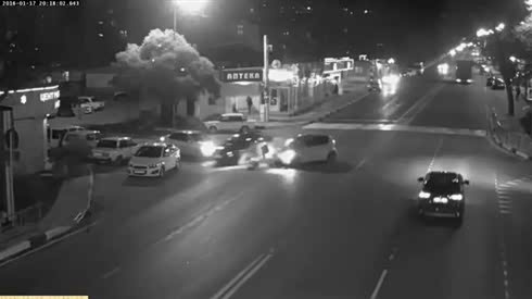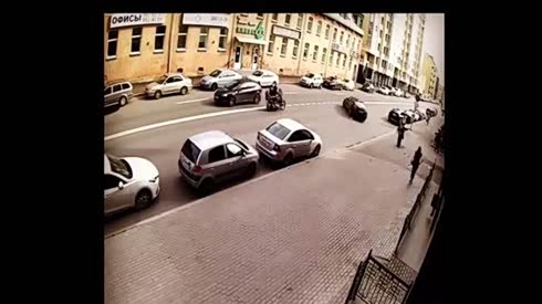 人仰车翻 实拍摩托骑士被转弯轿车撞惨