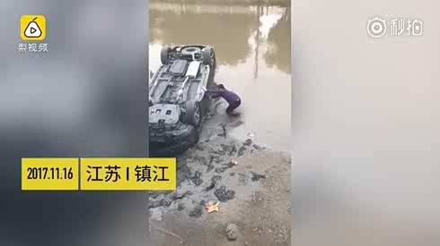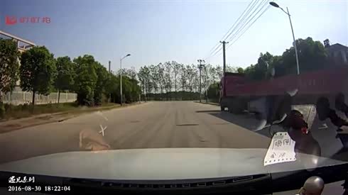 生死一瞬 摩托车突然摔倒在水泥罐车前