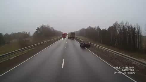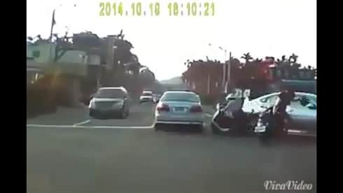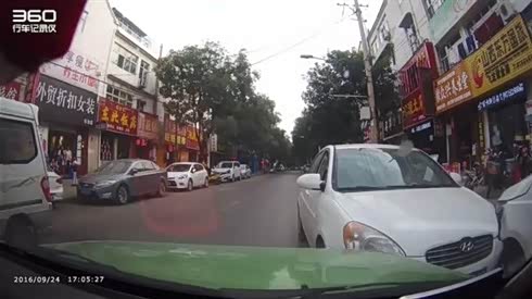 记录仪实拍 超长厢式大货撞上奥迪轿车
