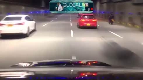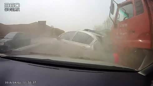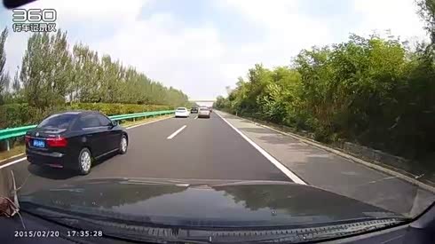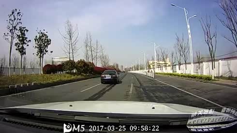 小轿车躲避追尾变道 摄像车遭殃进沟