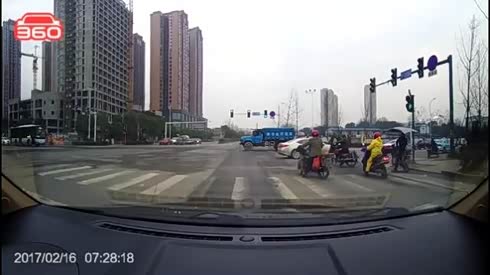 闯灯惹的祸!摩托车路口遭汽车撞飞
