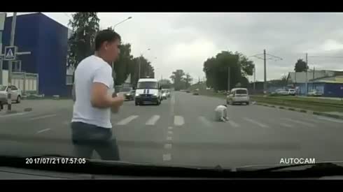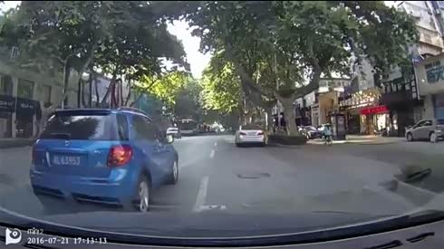 踉跄的骑士 摩托车街头炫技被轿车顶撞