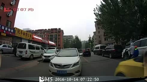 孩子不懂事 乱开车门导致大叔骑车摔倒