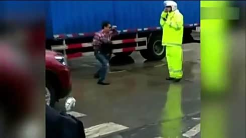 蛇拳有模有样!墨镜男挡路和交警耍拳