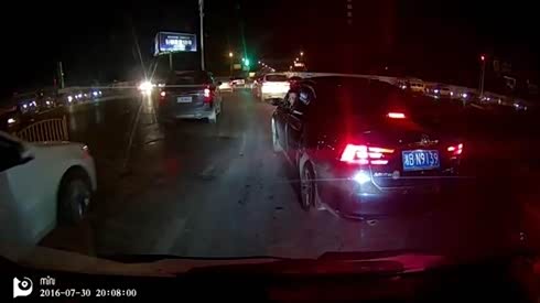 自讨苦吃 实拍小货车强硬并线被撞飞