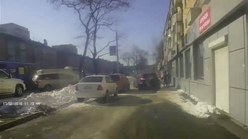 吓得不行了 行人背后突遭汽车倒车撞倒