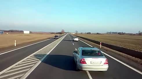 挥棍就抡 奔驰车公路恶意刹车别停后车
