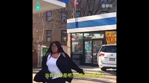 谁再拍我就干谁!黑人猛女驾车撞进商店