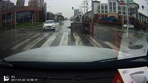 真是不要命了!三蹦子闯灯被轿车顶翻