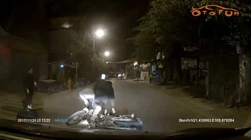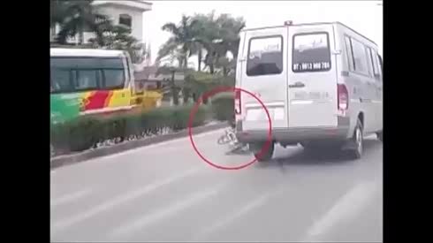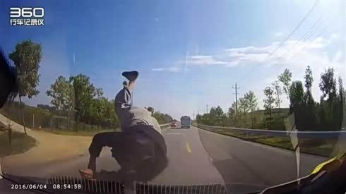 鞋都飞了 摩托男突然窜出被摄像车撞倒